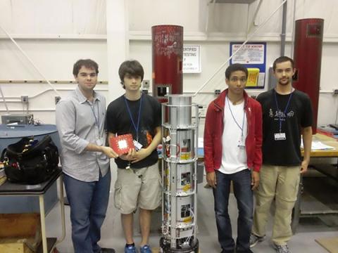 Ethan Hayon, Mike Giglia, Professor Joseph Miles, Jeremy Simoes and Dan Huber recently returned from the Rock-SAT-C program. They worked on a sounding rocket payload developing a Fiber Optic Gyroscope and a Thermoelectric Generator over the last year. They transported the payload to Wallops Island, Virginia and launched it approximately 75 miles into space on Thursday June 20th, 2013. They are currently analyzing the data. Mark Siembab, Jason Robins, Andrew Cupo, Palash Mehta, Andrew Deutchman, Anthony DiGirolamo and Thomas DeGirolamo were also part of the team. For more information, see: http://spacegrant.colorado.edu/rs-c-home/previous-experiments/rs-c-2014-home